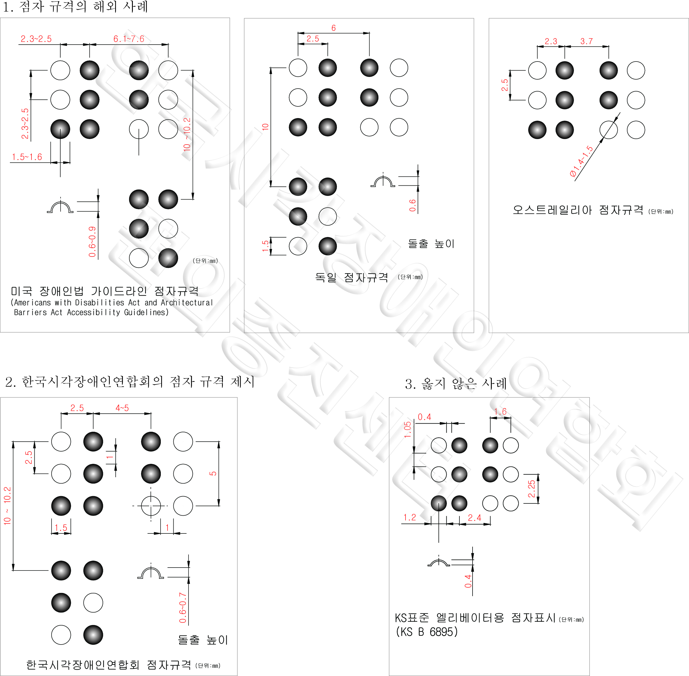 해외 점자 규격 사례에 따른 올바른 점자크기 규격